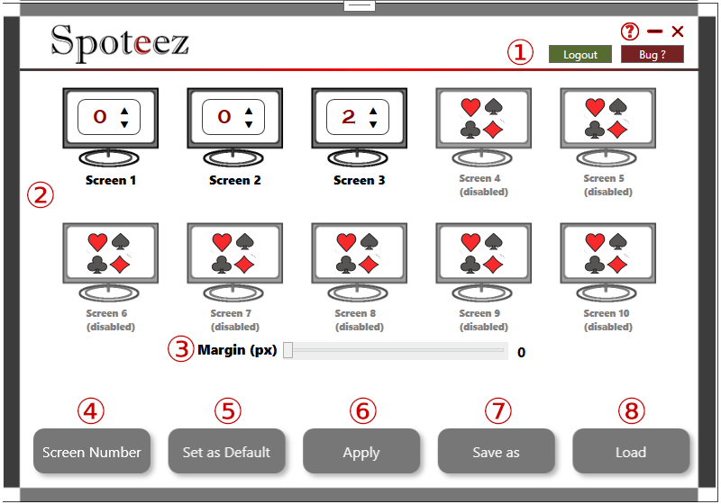 - ② Spoteez automatically detects available screens. Simply specify the number of tables desired per screen.